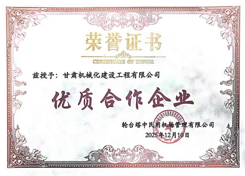 近日,新疆輪臺機場項目業(yè)主單位正式發(fā)布表彰決定,對項目建設(shè)期間履約盡責(zé)、實績突出的合作方及個人予以通報嘉獎,我司憑借扎實的工程履約能力與優(yōu)質(zhì)服務(wù)獲評“優(yōu)質(zhì)合作企業(yè)”,項目負(fù)責(zé)人同步斬獲“優(yōu)秀項目經(jīng)理”稱號,實現(xiàn)集體與個人榮譽雙豐收,彰顯業(yè)主單位對我司項目建設(shè)工作的高度認(rèn)可。